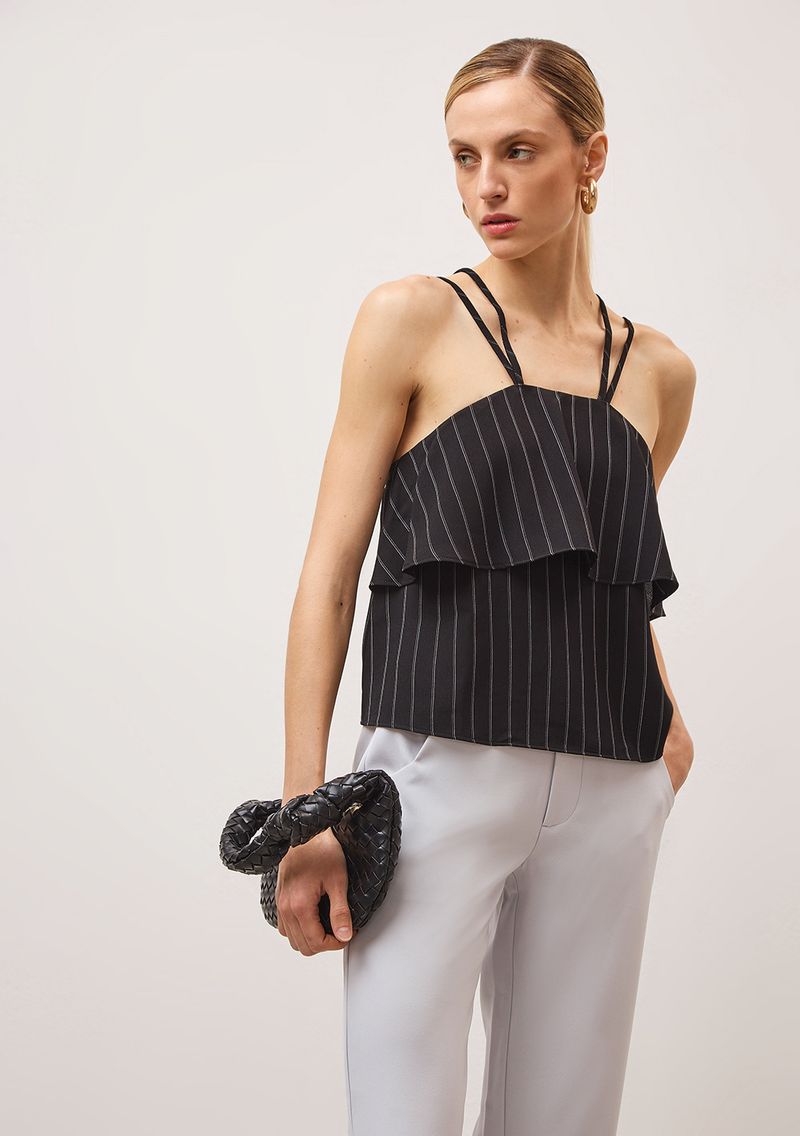 OUTLETColeçõesRegatas e TopsRegata Iódice Decote Reto Com Babado Preto
