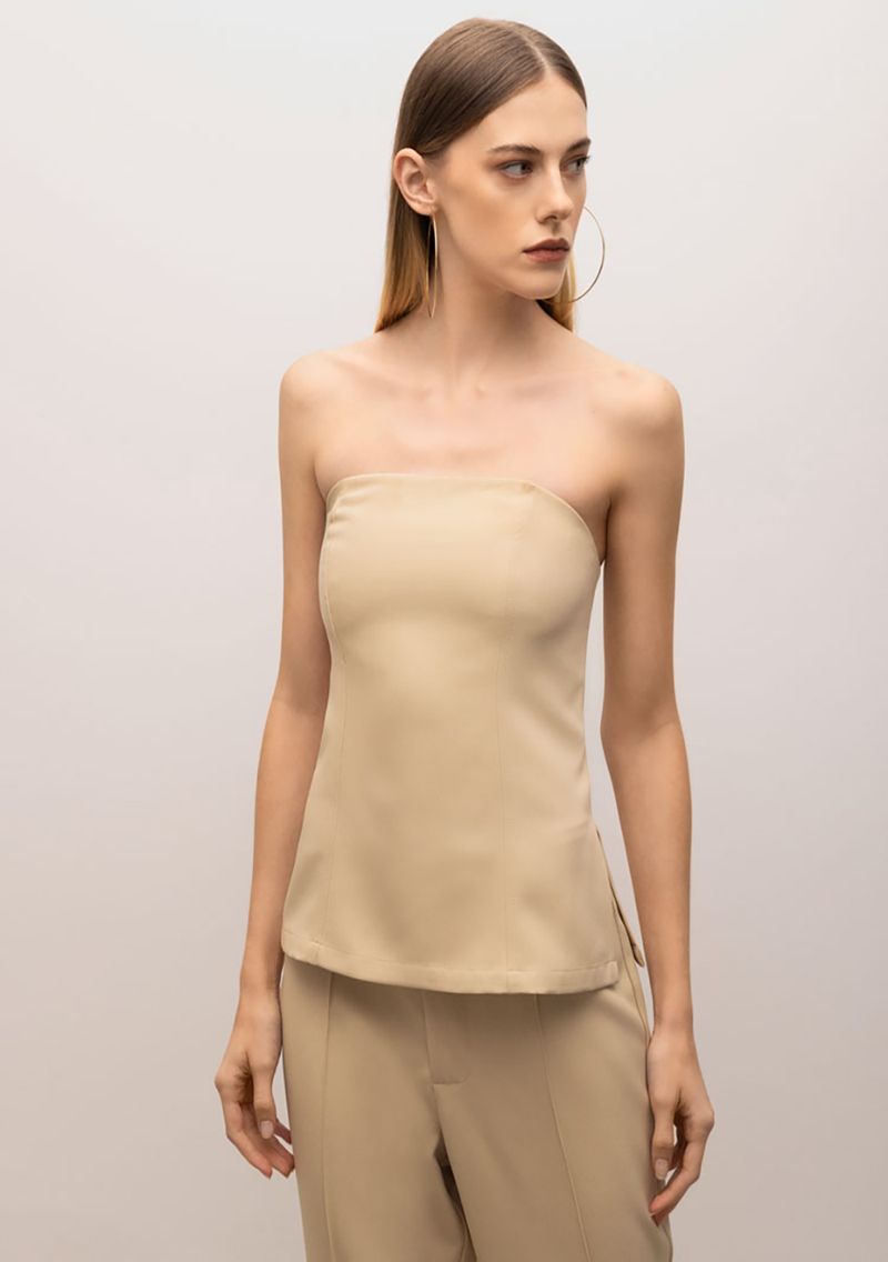 Regata Iódice Decote Reto Com Fendas Bege