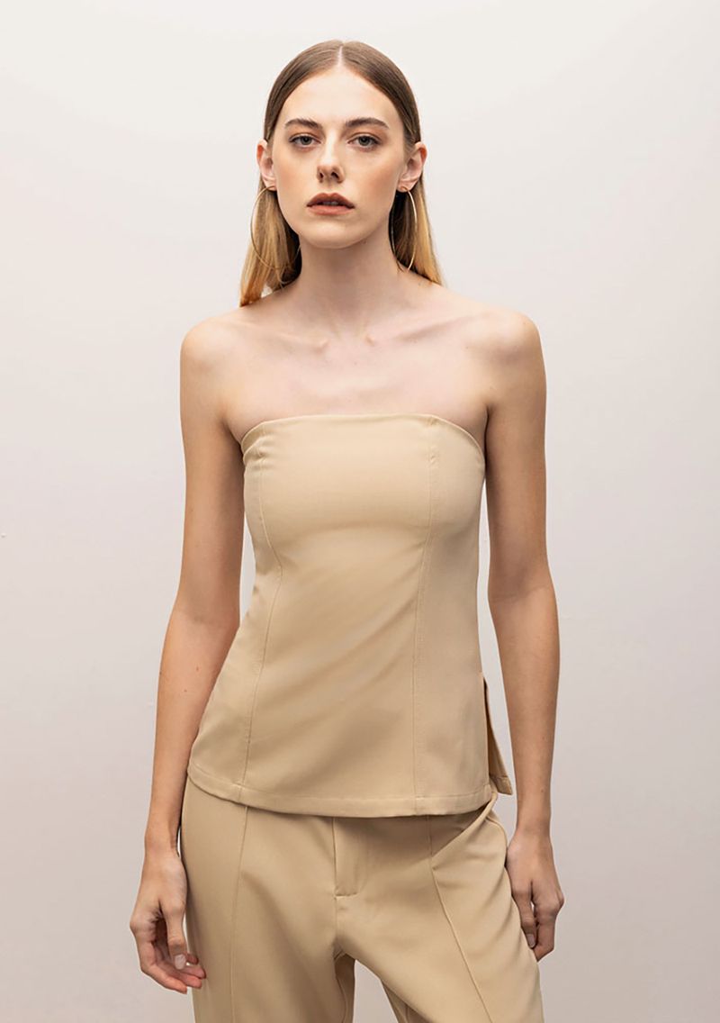 OUTLETColeçõesRegatas e TopsRegata Iódice Decote Reto Com Fendas Bege