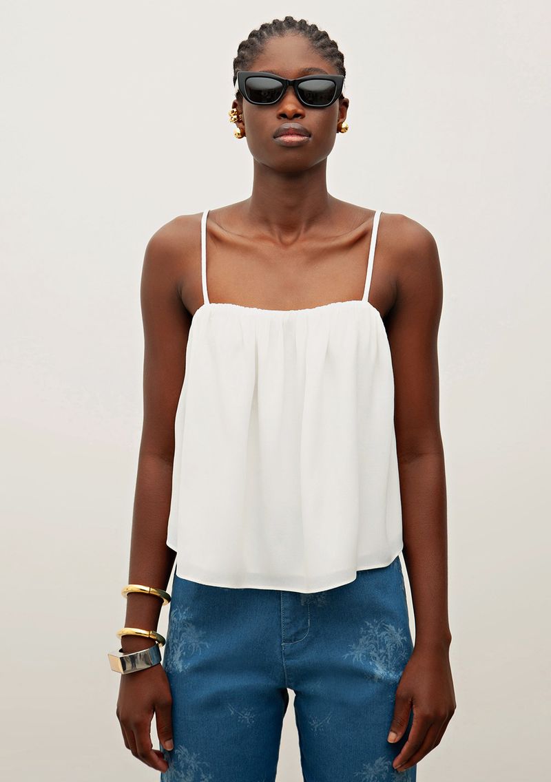 OUTLETColeçõesRegatas e TopsRegata Iódice Decote Reto Detalhe Alças Off White