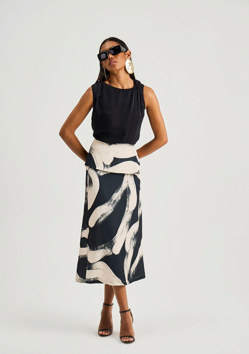 Eleve seu estilo com a Regata Iódice Solta Decote Careca Padrão Preto, uma peça que combina elegância e conforto de forma única. Com um design sofisticado e print exclusivo, essa regata da coleção Neoclássico é a tradução perfeita de equilíbrio e idealismo, unindo o clássico ao contemporâneo. Feita em viscose e poliéster, sua fluidez e toque macio abraçam o corpo, garantindo leveza e performance para ocasiões que vão do casual ao sofisticado. Experimente combiná-la com saias midi ou calças de alfaiataria para um visual moderno e autêntico. Lembre-se: os acessórios não acompanham a peça.