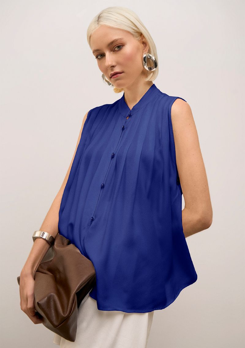 Combine-a com uma saia midi e sandálias de salto para um look sofisticado, ou escolha um jeans e tênis para um visual mais descontraído. A paleta de azul é versátil e harmoniza com acessórios em tons neutros ou vibrantes, enriquecendo seu estilo pessoal.
