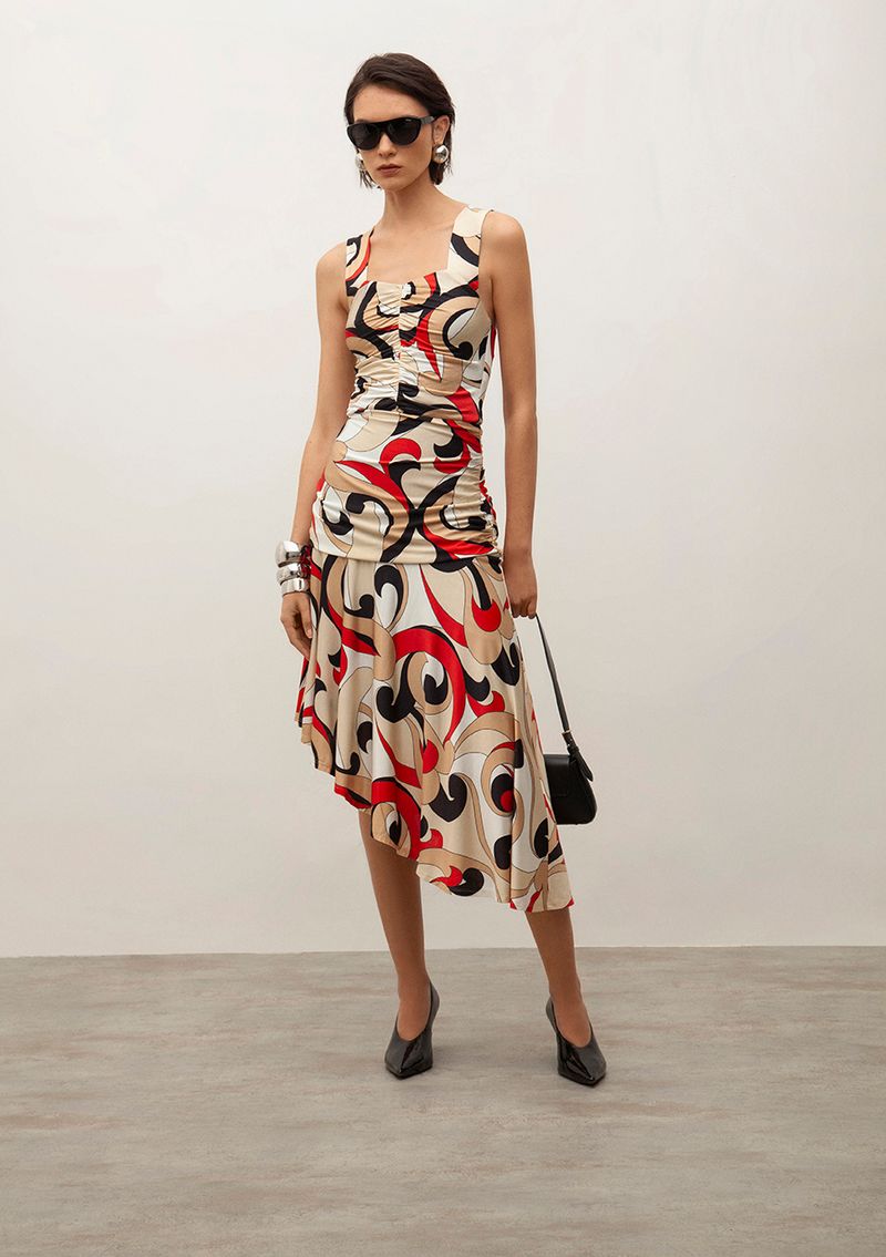 Saia Iódice Midi Assimétrica Com Franzidos Vermelho