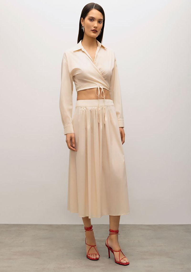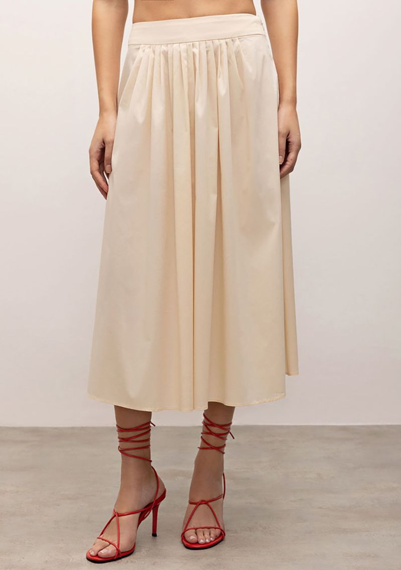 OUTLETColeçõesSaiasSaia Iódice Midi Evasê Com Pregas Bege