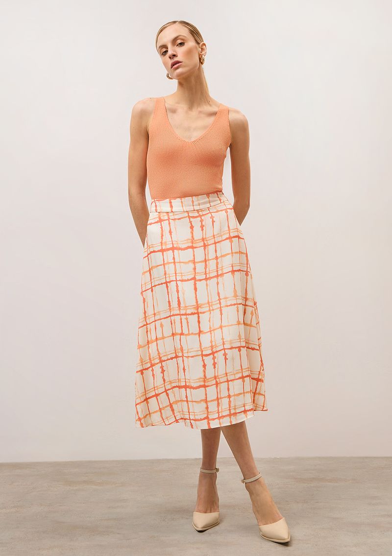 OUTLETColeçõesSaiasSaia Iódice Midi Evasê Com Recorte Off White