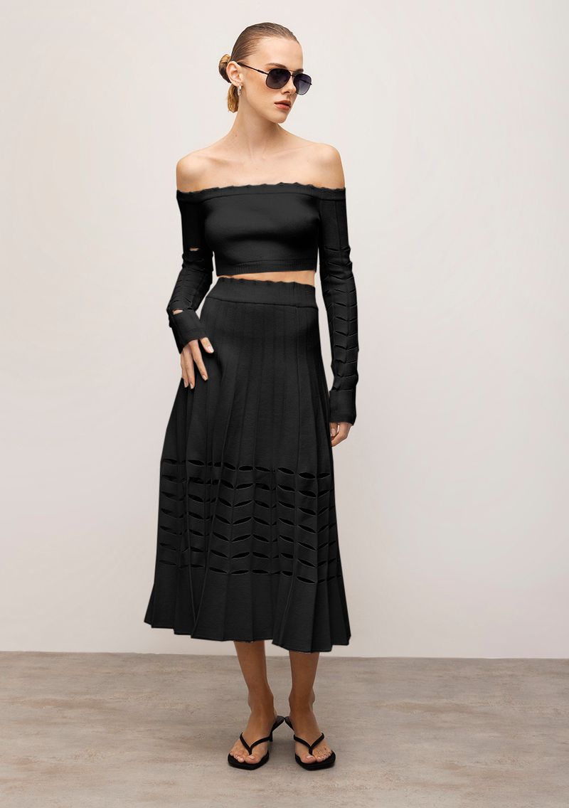 OUTLETColeçõesSaiasSaia Iódice Midi Fluida Com Recorte Preto