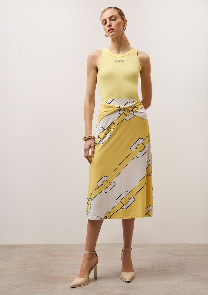Saia Iódice Midi Reta Detalhe Cós Amarelo