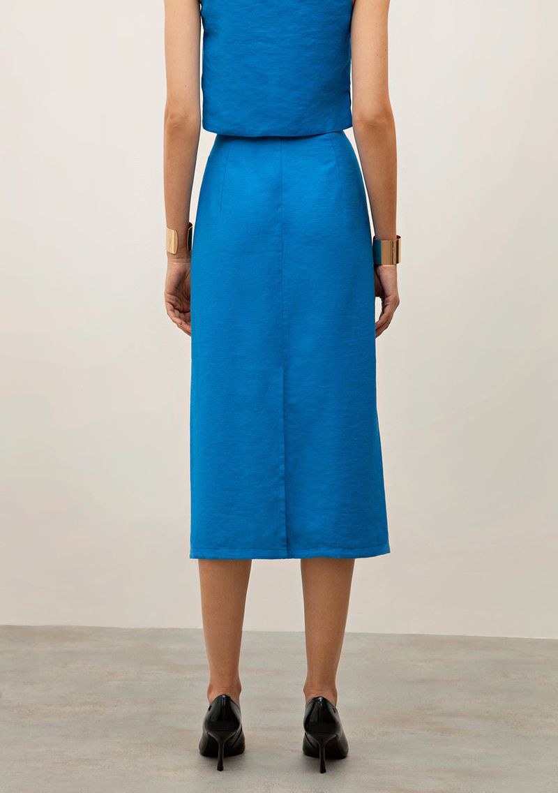 OUTLETColeçõesSaiasSaia Iódice Midi Reta Detalhe Cós Azul