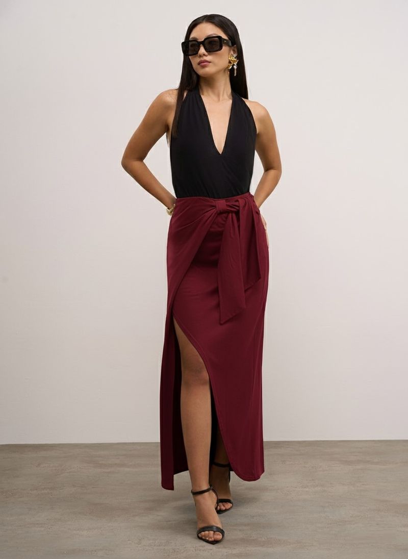 OUTLETColeçõesSaiasSaia Iódice Reta Alta Midi Bordo