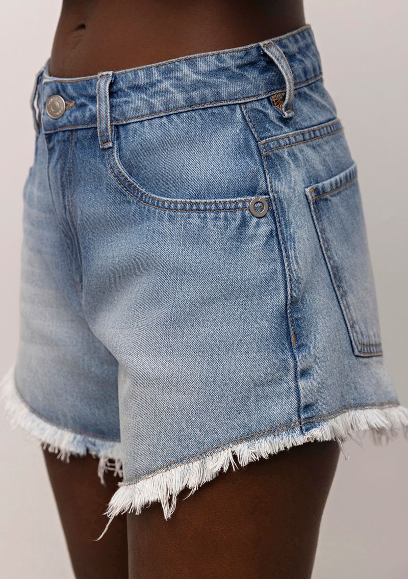 Shorts Iódice Five Pockets Barra Arredondada Jeans