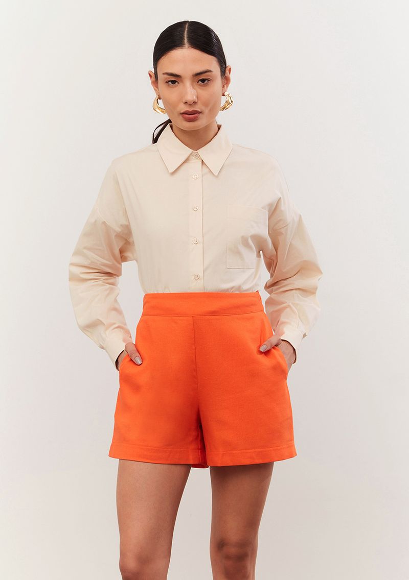 OUTLETJeansColeçõesShortsShorts e BermudasShorts Iódice Reto Detalhe Elástico Laranja