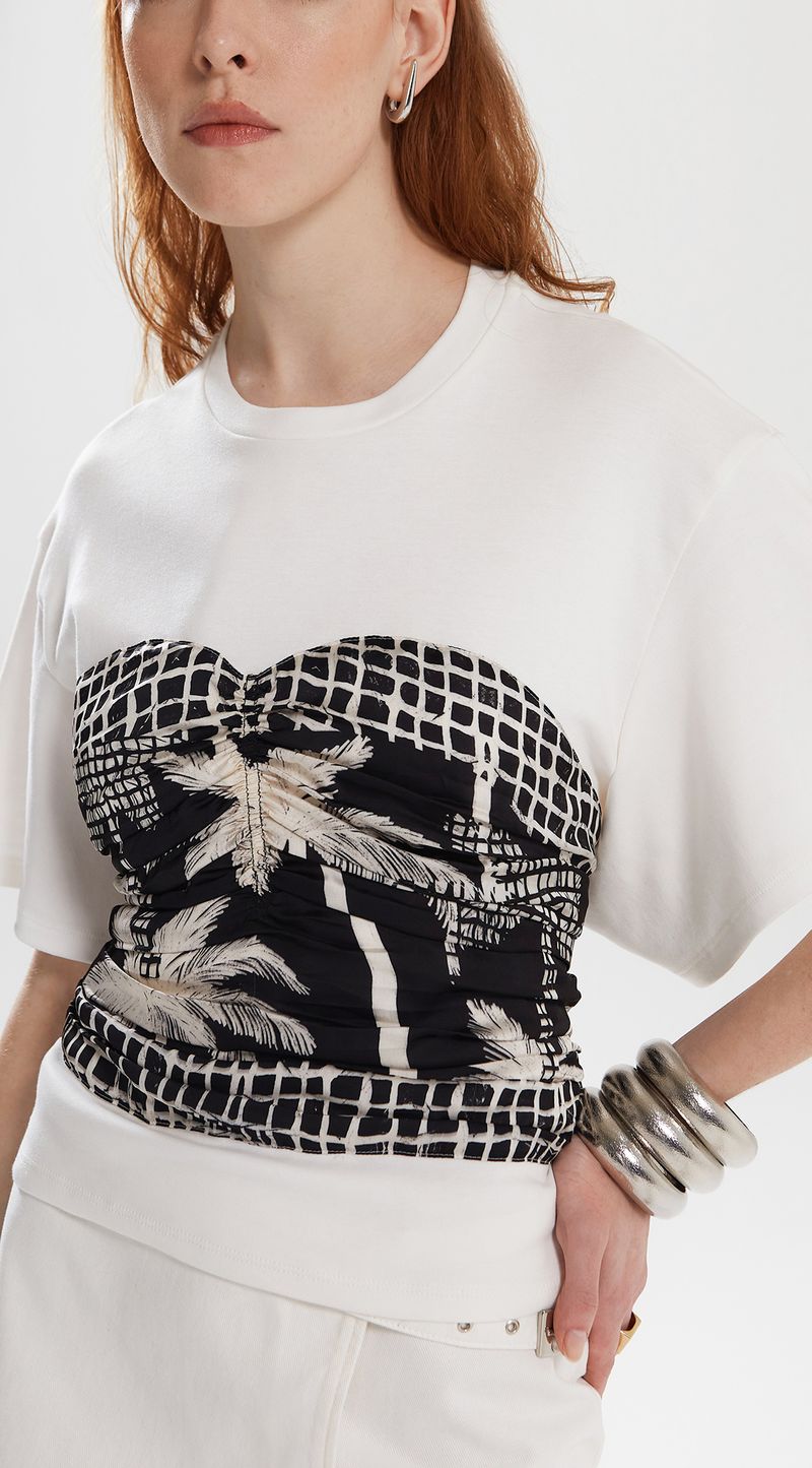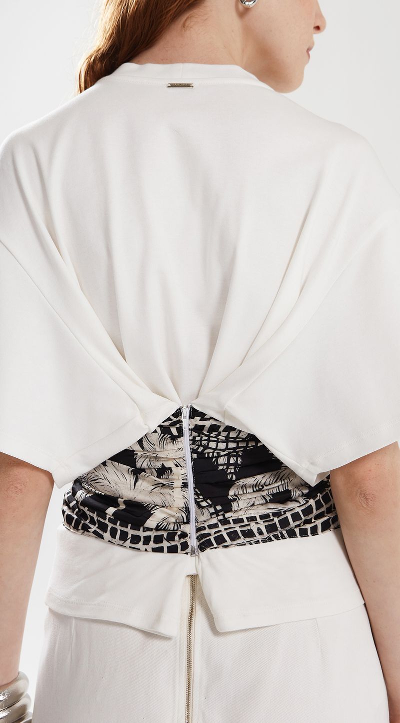 T-Shirt Iódice Decote Ribana Com Corset Off White