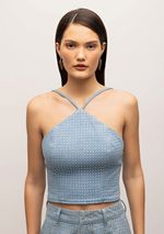 Top Iódice Cropped Alça Com Termocolante Jeans