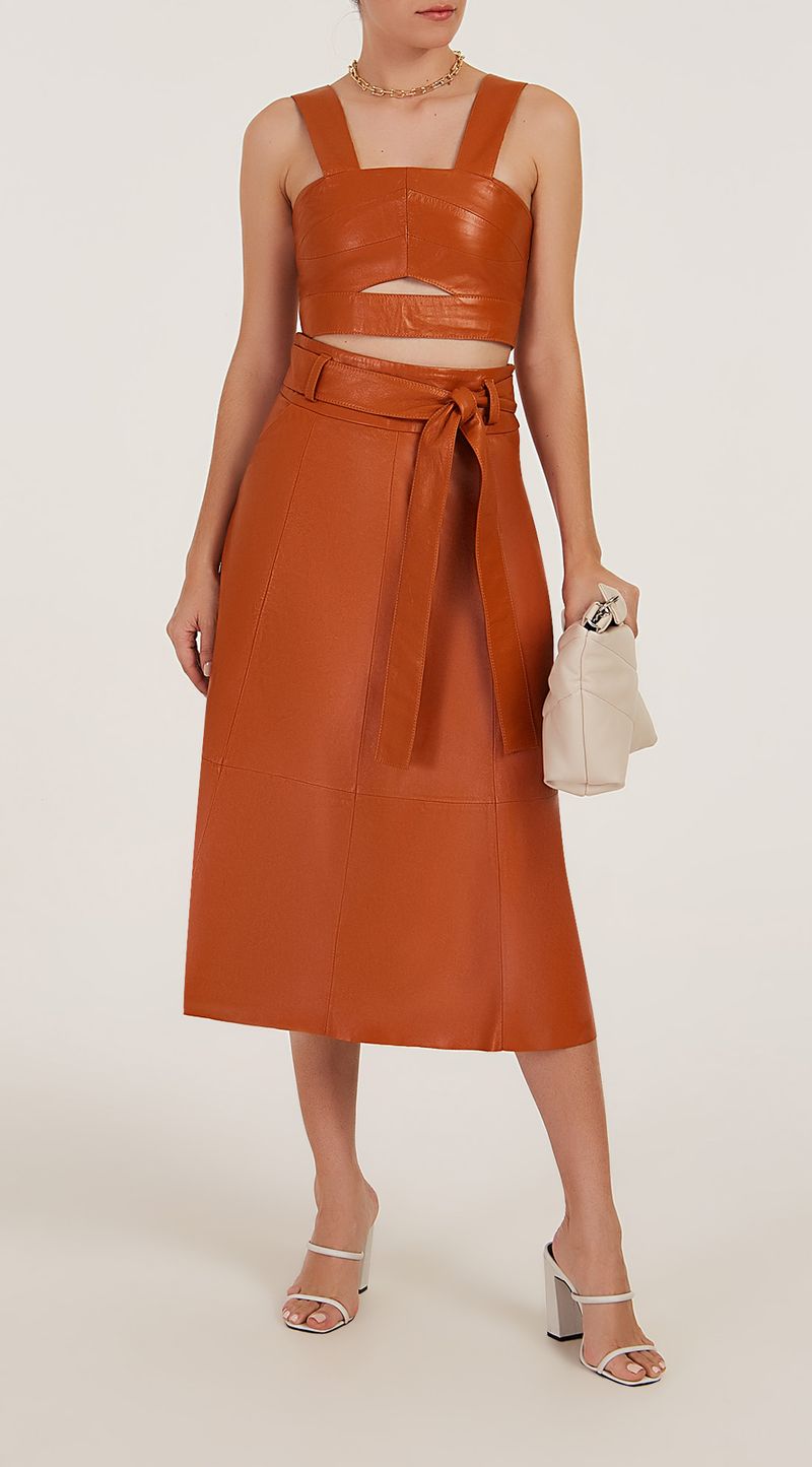 OUTLETColeçõesRegatas e TopsTop Iódice Cropped Alça Larga Detalhe Zíper Marrom