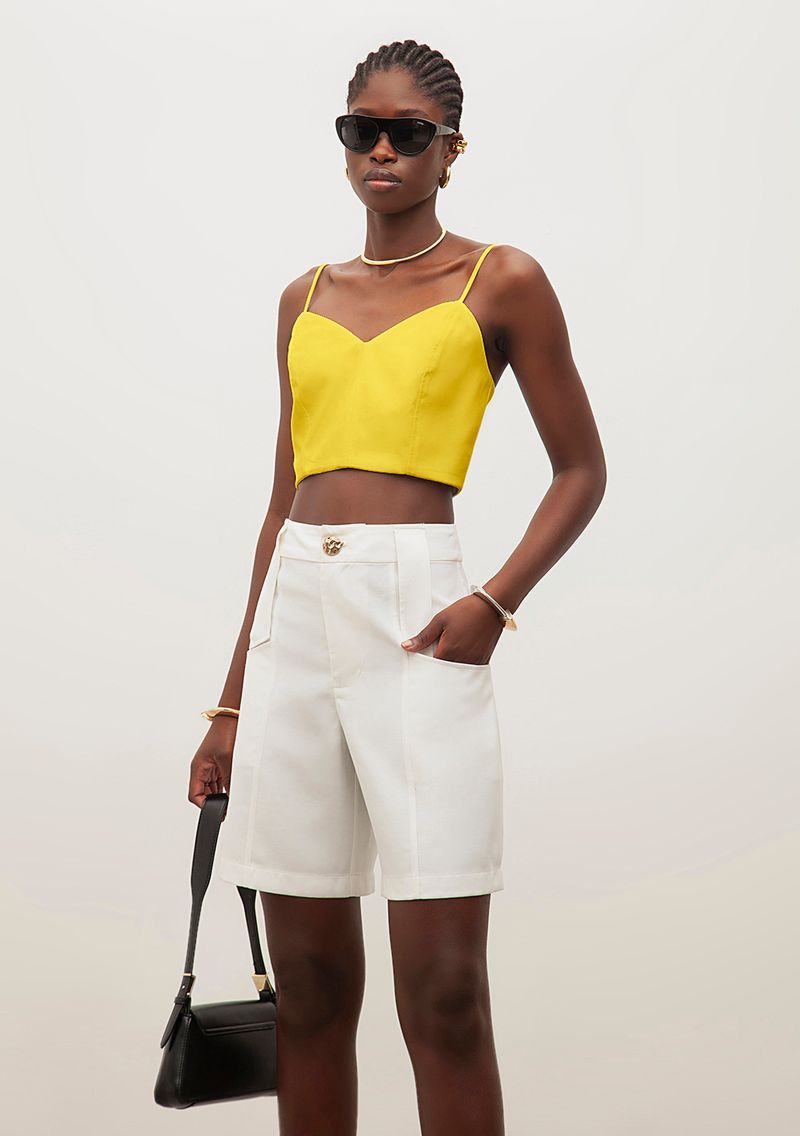 OUTLETColeçõesRegatas e TopsTop Iódice Decote V Alça Fina Amarelo