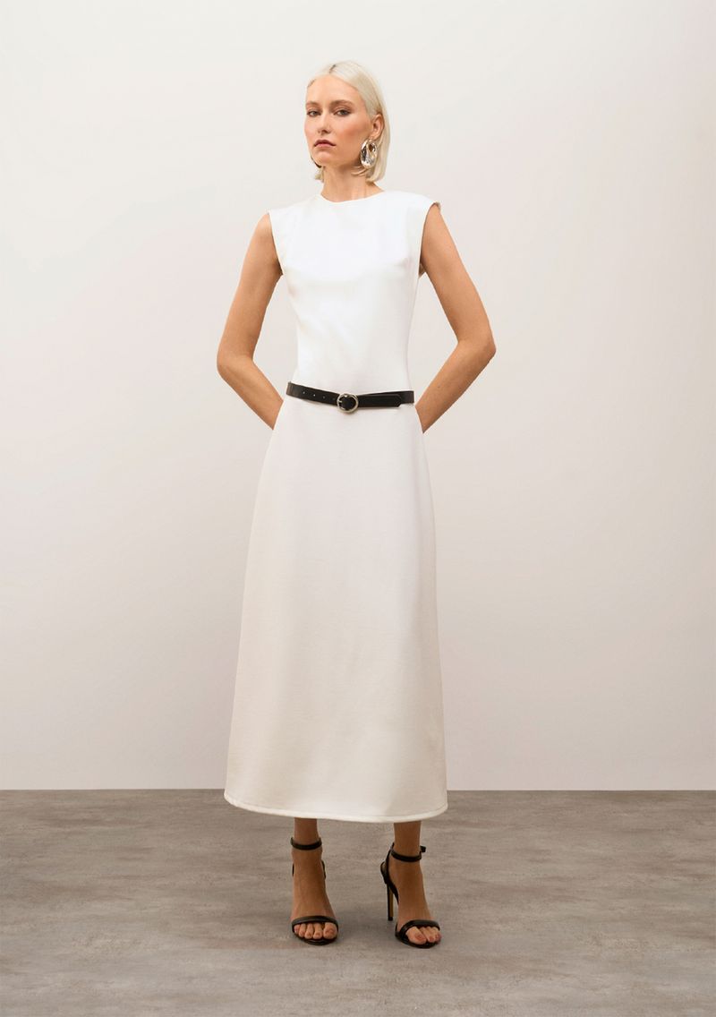 Descubra o charme e a sofisticação do Vestido Iódice Ajustado Decote Careca Sem Manga Midi Off White. Ideal para ocasiões casuais ou festas, este vestido da Coleção EDGE OF LIGHT exala elegância com seu design midi ajustado que valoriza a silhueta feminina. Feito com uma mistura de poliéster, viscose e elastano, ele oferece conforto e leveza para os dias mais quentes da Primavera/Verão 2025. O decote careca e a ausência de mangas conferem um toque moderno e versátil, perfeito para combinar com acessórios dourados ou prateados, além de sandálias de salto fino para um look ainda mais marcante. A Iódice, renomada por sua moda premium, reafirma seu compromisso com a qualidade e a brasilidade em cada detalhe. Com este vestido, brilhe e sinta-se autêntica em qualquer evento. *Os acessórios não acompanham a peça.*