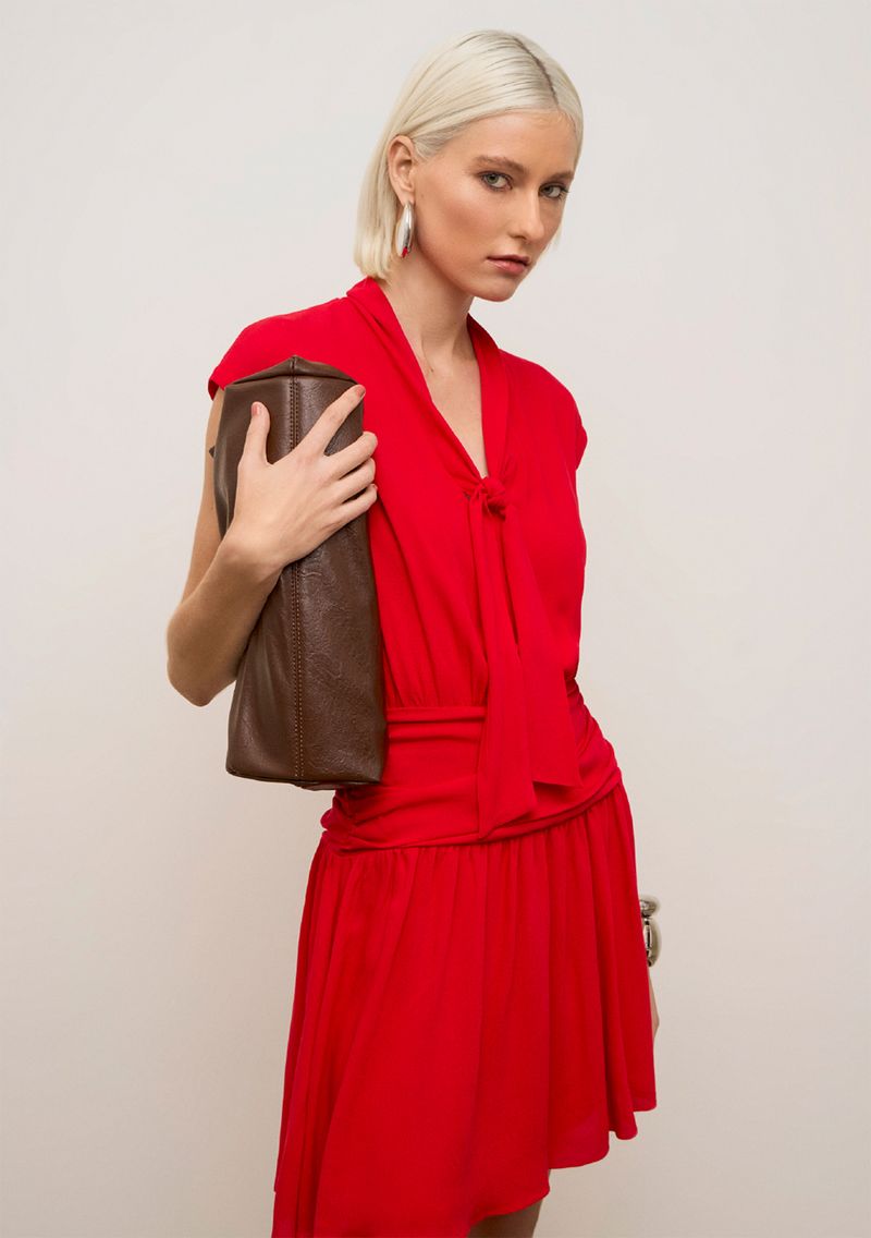 OUTLETColeçõesVestidosVestido Iódice Ajustado Decote V Sem Manga Curto Vermelho