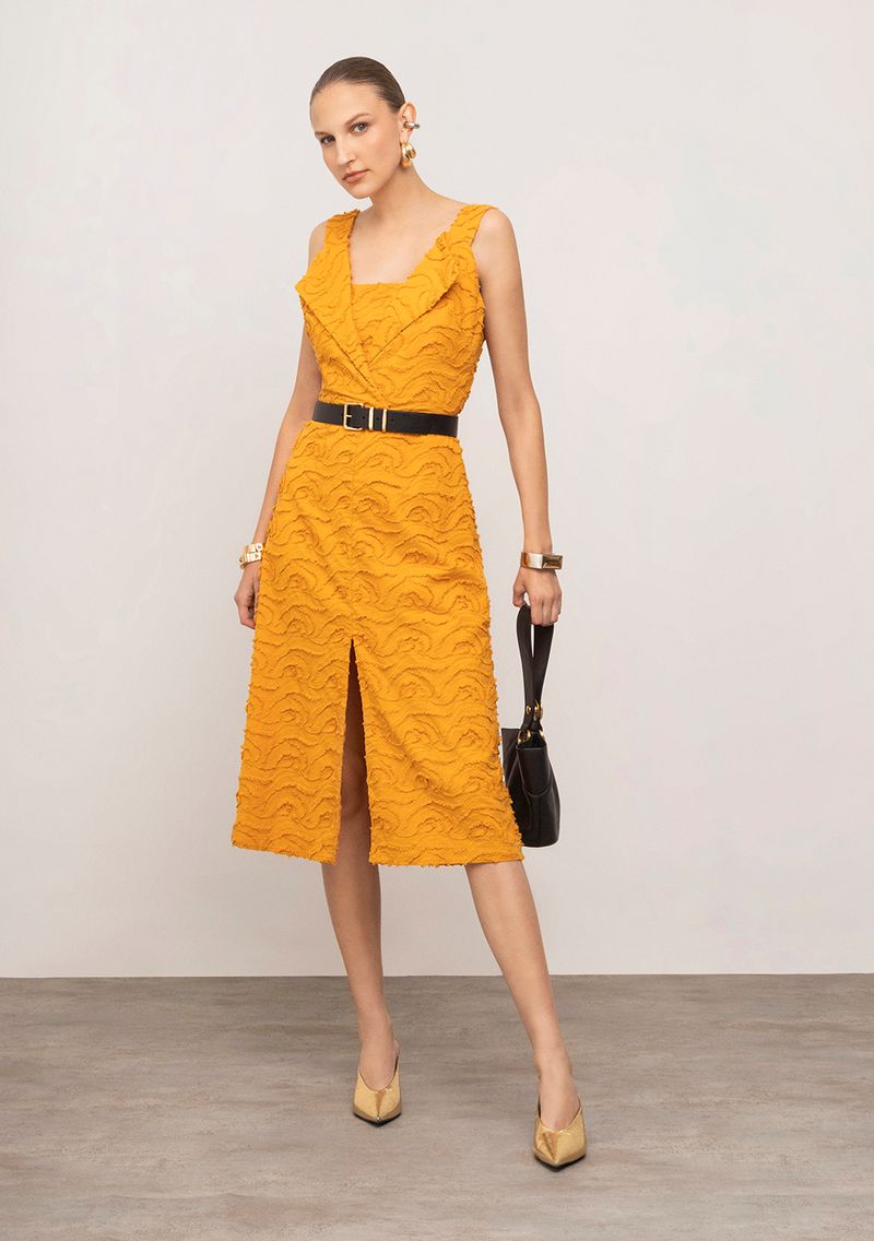 Vestido Iódice Ajustado Decote V Sem Manga Midi Laranja