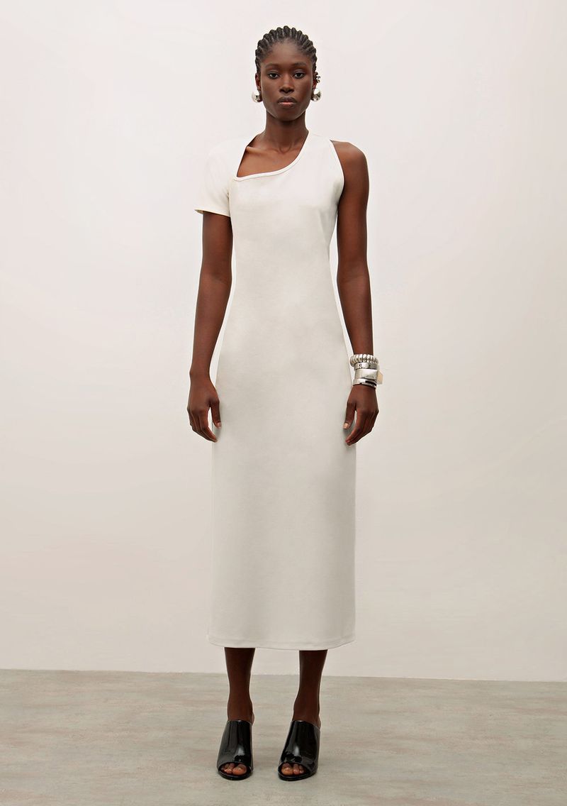 OUTLETColeçõesVestidosVestido Iódice Ajustado Um Ombro Só Manga Curta Midi Preto