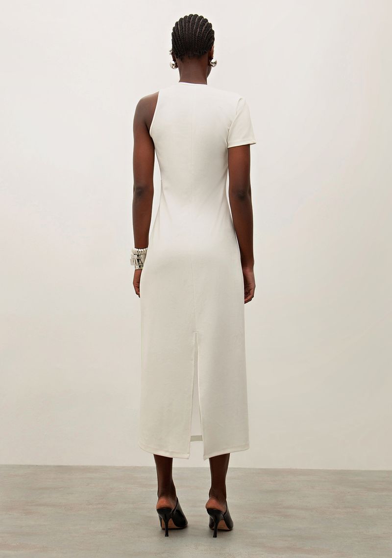 Vestido Iódice Ajustado Um Ombro Só Manga Curta Midi Preto