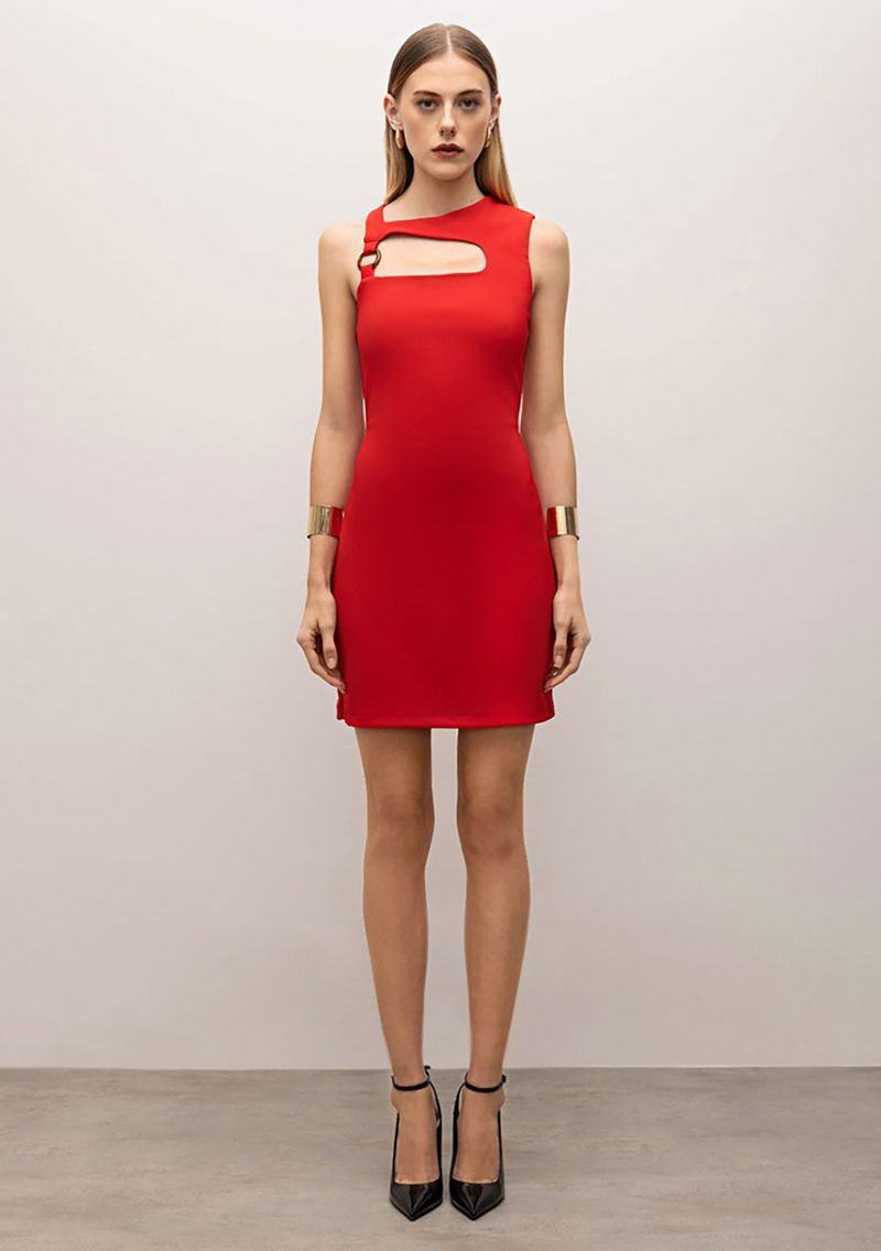 Vestido Iódice Curto Decote Assimétrico Com Argola Vermelho