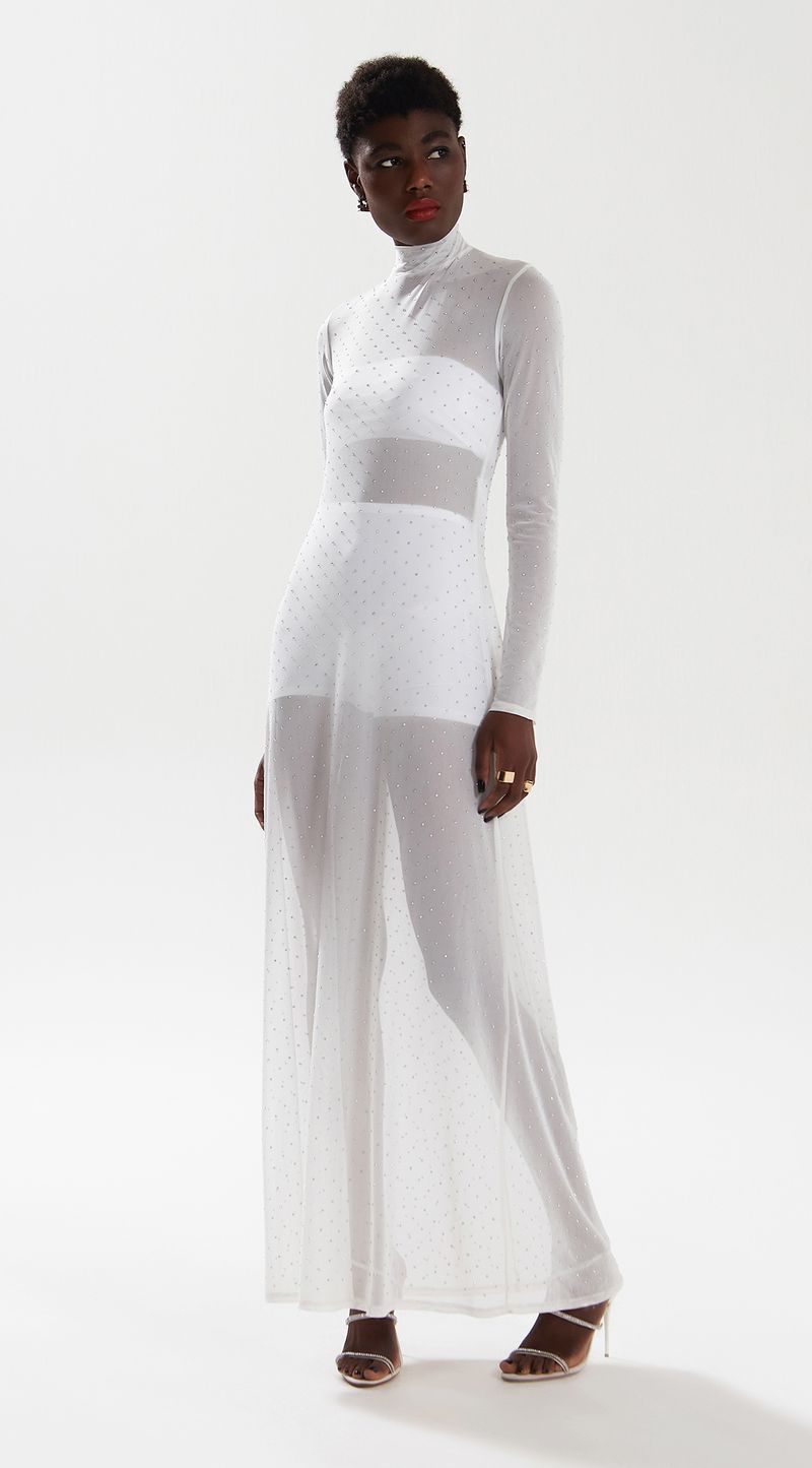 Vestido Iódice Longo Gola Alta Com Transparência Off White