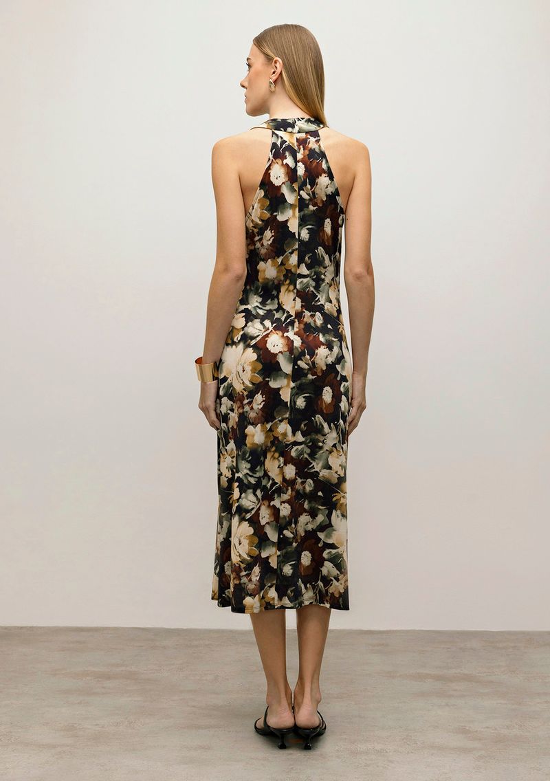 Vestido Iódice Midi Decote Degage Estampado Preto
