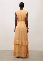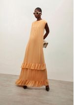 OUTLETColeçõesVestidosVestido Iódice Midi Decote Redondo Com Babado Marrom