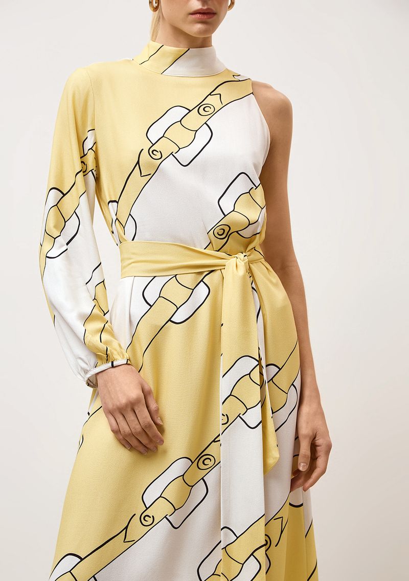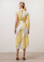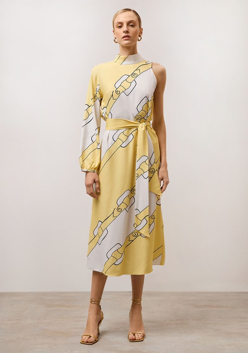 OUTLETColeçõesVestidosVestido Iódice Midi Decote Redondo Com Faixa Amarelo