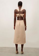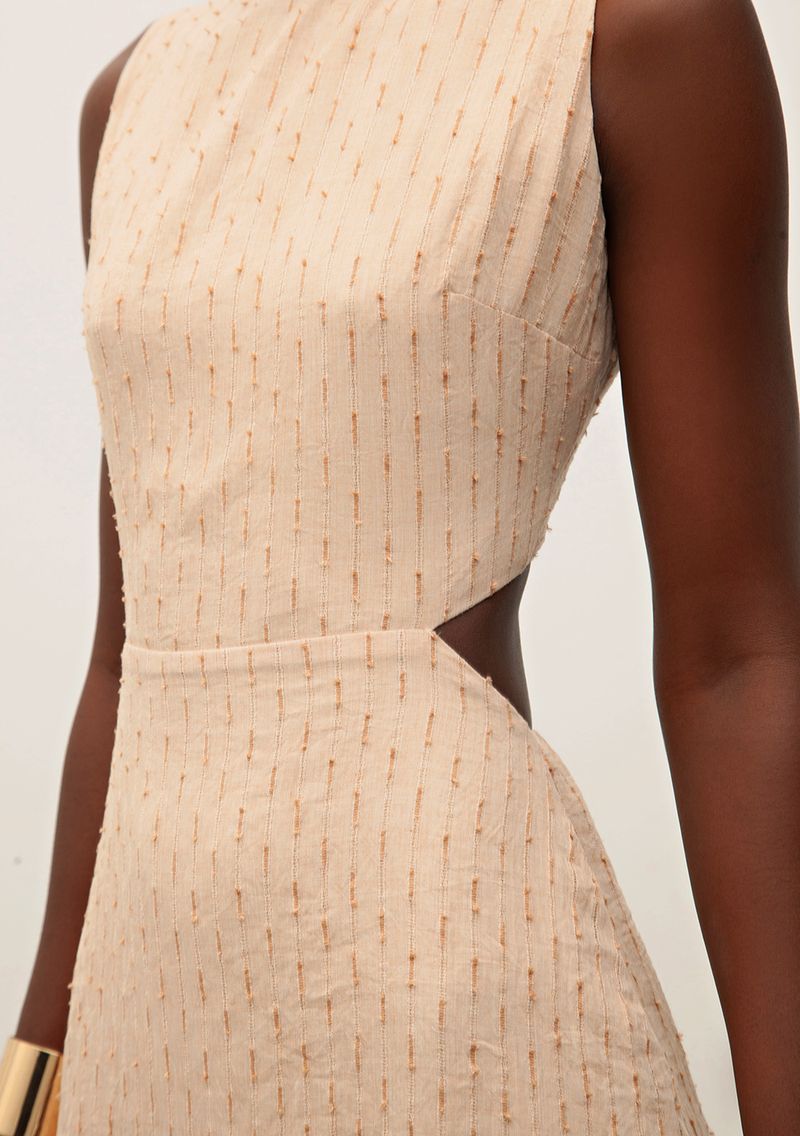 Vestido Iódice Midi Decote Redondo Detalhe Costas Bege