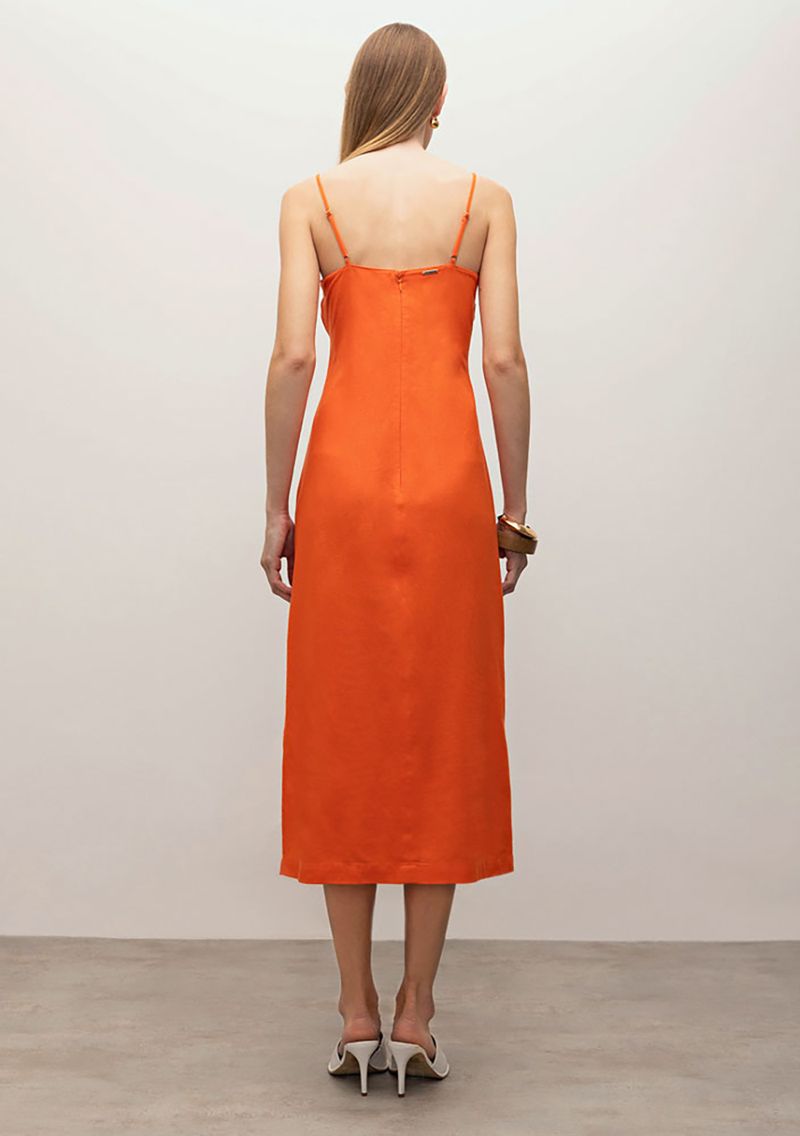 OUTLETColeçõesVestidosVestido Iódice Midi Decote Reto Com Franzido Laranja