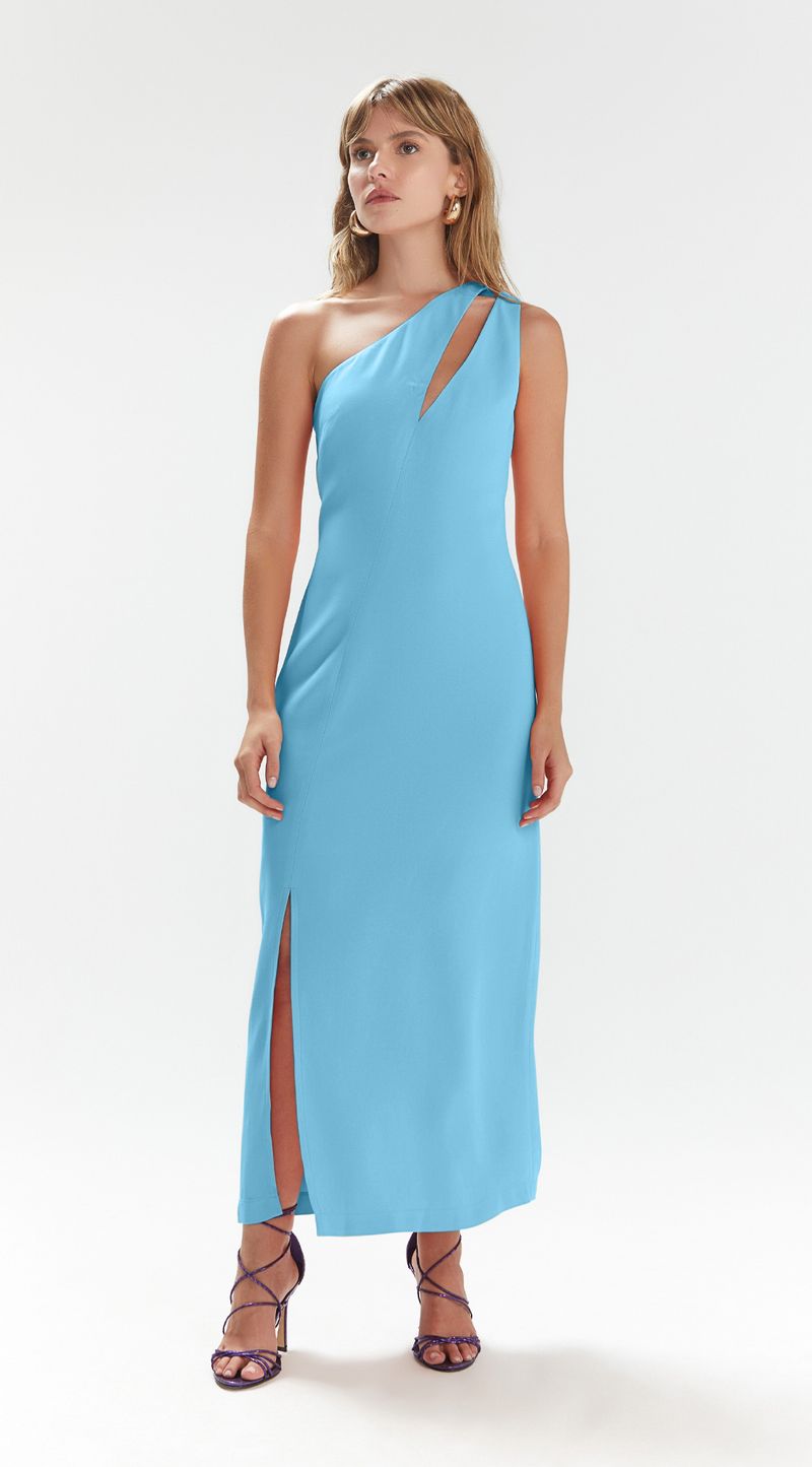 OUTLETColeçõesVestidosVestido Iódice Midi Decote V Com Fenda Azul