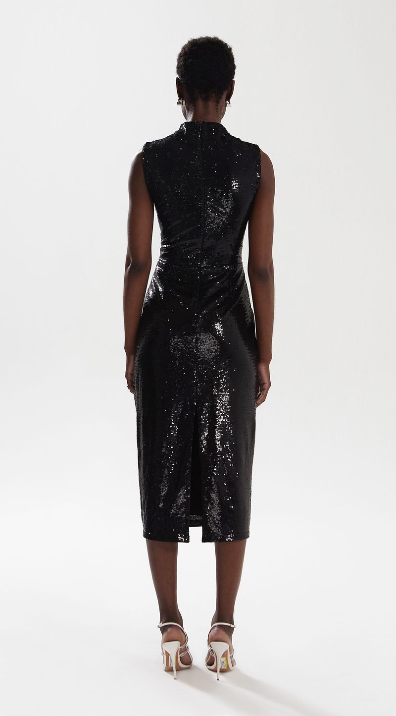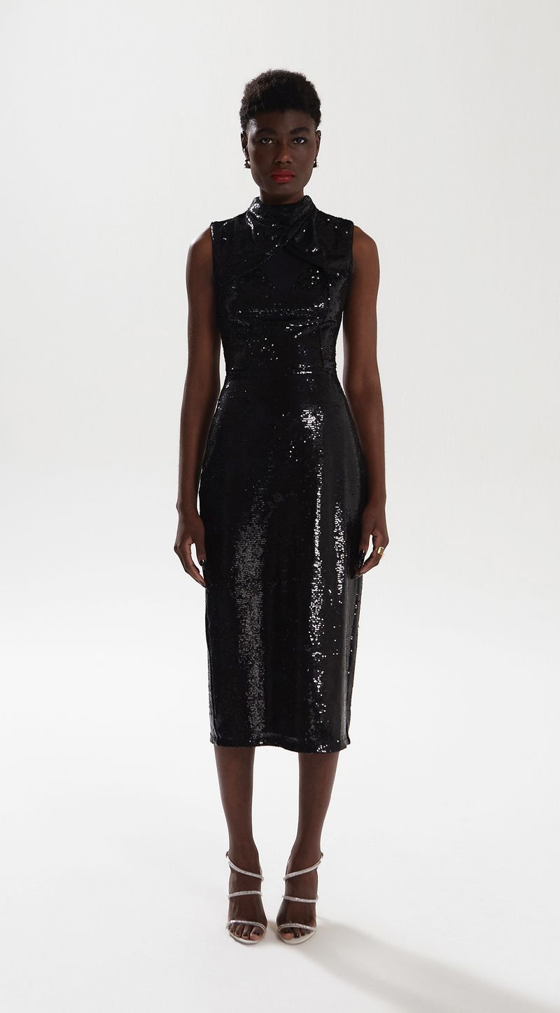 OUTLETColeçõesVestidosVestido Iódice Midi Decote V Com Recorte Preto