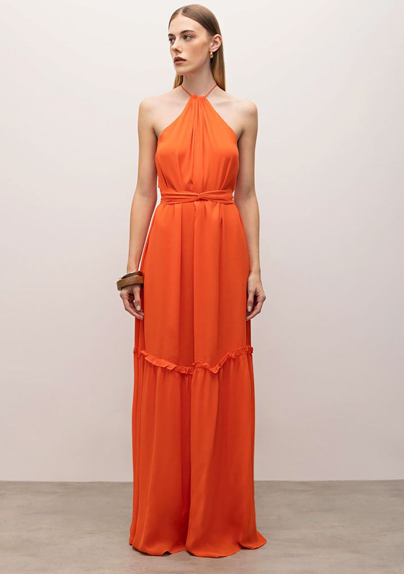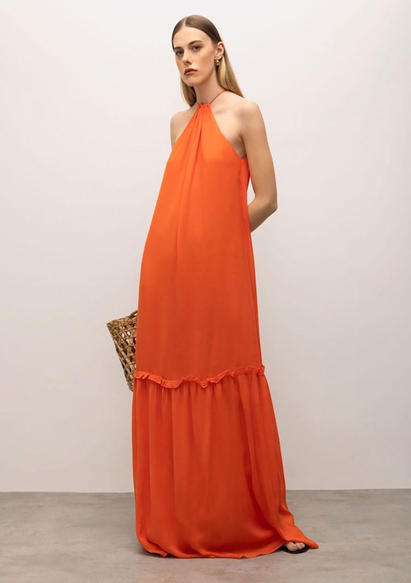 OUTLETColeçõesVestidosVestido Iódice Solto Cava Francesa Sem Manga Longo Laranja