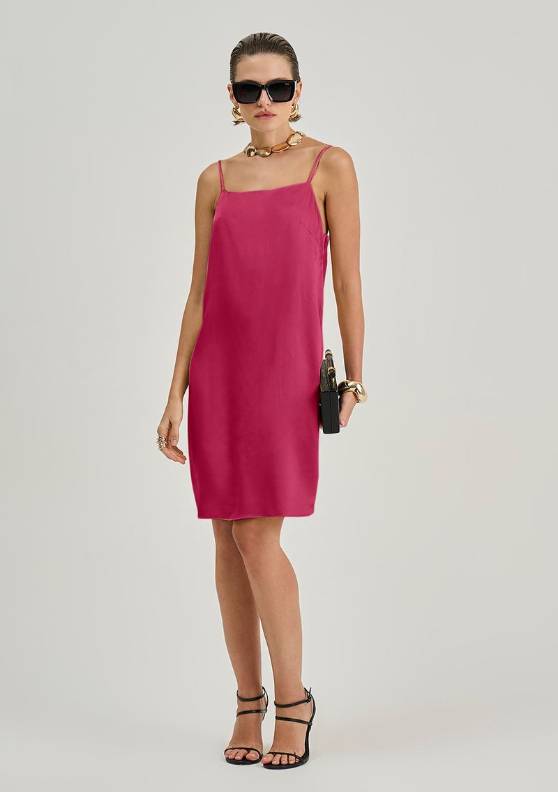 Vestido Iódice Solto Decote Reto Com Alça Curto Rosa