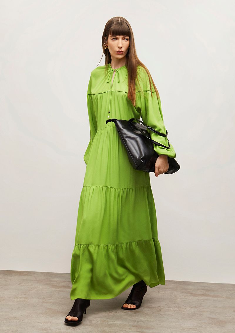 OUTLETColeçõesVestidosVestido Iódice Solto Decote V Manga Longa Longo Verde