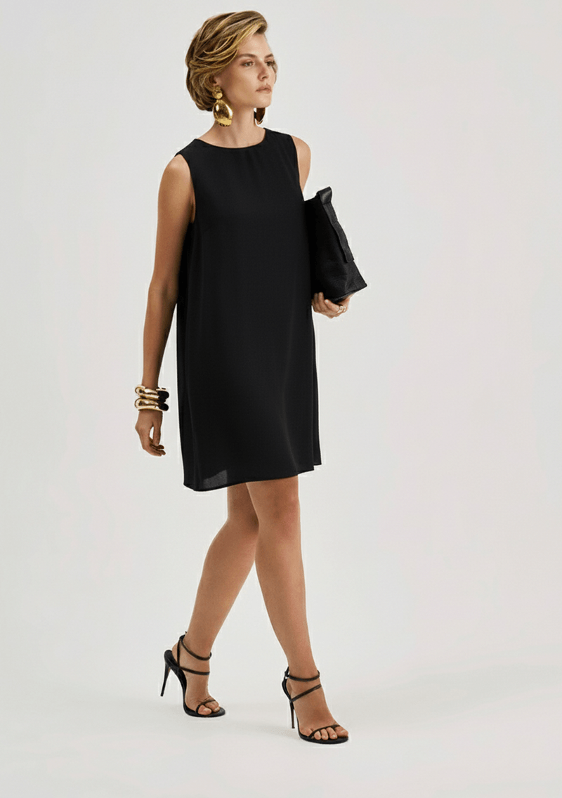 OUTLETColeçõesVestidosVestido Iódice Solto Gola Alta Sem Manga Curto Preto