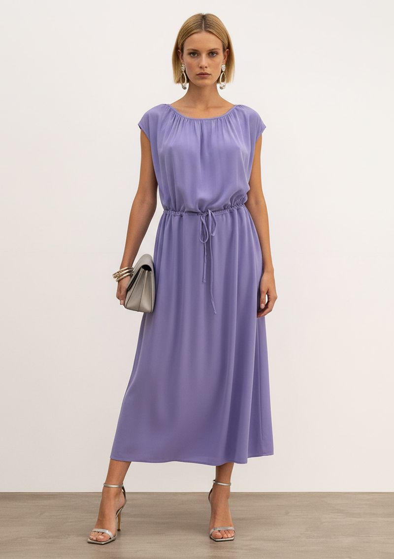 Vestido Solto Decote Canoa Sem Manga Midi Lilas