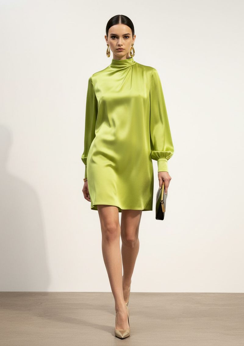 O Vestido Solto Gola Alta Manga Longa Curto Verde da Iódice é a peça ideal para quem busca elegância e conforto em qualquer ocasião. Com um corte solto e sofisticado, ele se destaca pela gola alta e mangas longas, proporcionando um visual marcante e contemporâneo. O cetim de alta qualidade, 100% viscose, garante leveza e fluidez, abraçando suavemente o corpo. Perfeito para ser usado em festas, jantares ou até mesmo no dia a dia, esse vestido versátil combina facilmente com acessórios como cintos finos e sandálias de salto, elevando ainda mais seu estilo. A coleção Soirée traz uma proposta festiva e cheia de nuances, ideal para momentos que merecem ser celebrados. Aposte na sofisticação e no conforto que este vestido oferece e destaque-se em qualquer evento. Lembre-se, os acessórios não acompanham as peças.